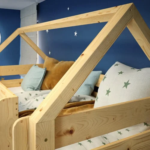 Konstrukcja w kształcie domku zachęca do spędzania czasu we własnym pokoju, pobudzając dziecięcą wyobraźnię.