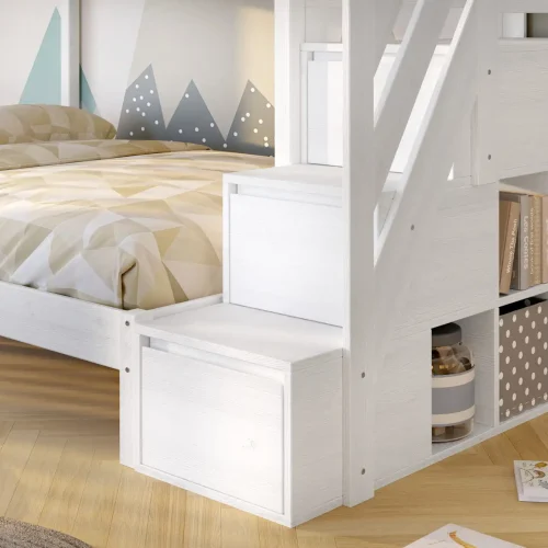 Łóżko piętrowe Sen Trio białe ze schodkami
