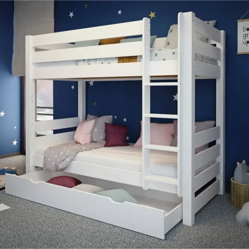 Sosnowe białe łóżko piętrowe Jan