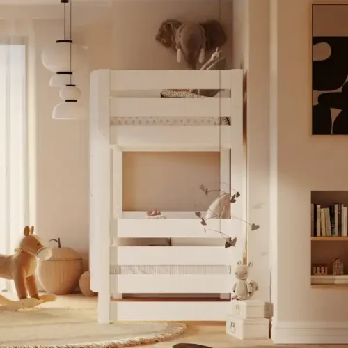 Łóżko piętrowe Jan to ponadczasowy model, który od lat cieszy się zaufaniem rodziców poszukujących funkcjonalnych, estetycznych i bezpiecznych rozwiązań do pokoju dziecięcego. Wykonane z wysokogatunkowego drewna sosnowego, pokryte białym lakierem wodnym, uwydatnia naturalne słoje i sęki – tworząc ciepły i przyjazny klimat we wnętrzu.
