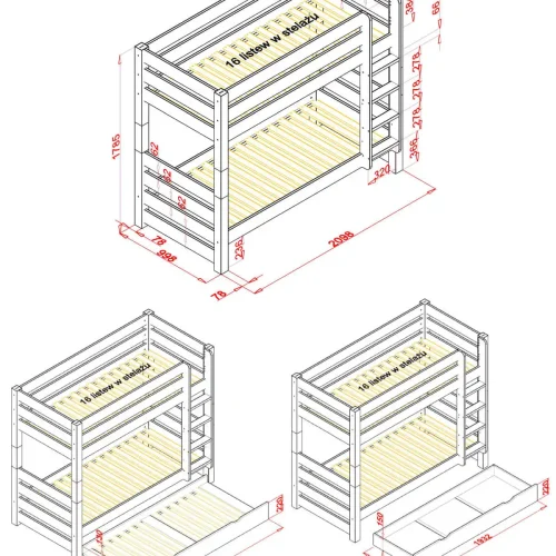 | Drabinka | Drabinka jest przystosowana do montażu zarówno po lewej jak i prawej stronie łóżka |