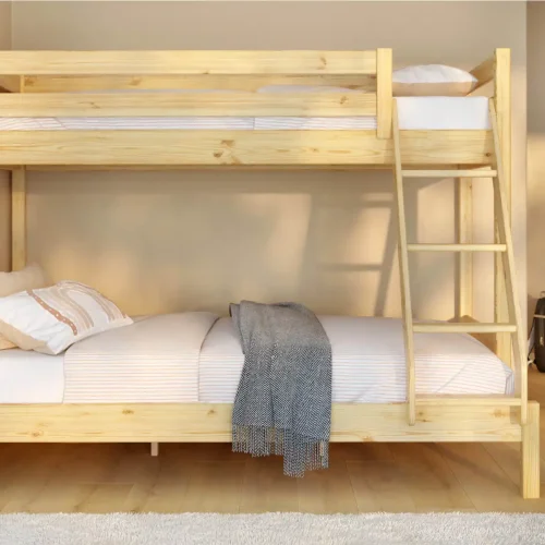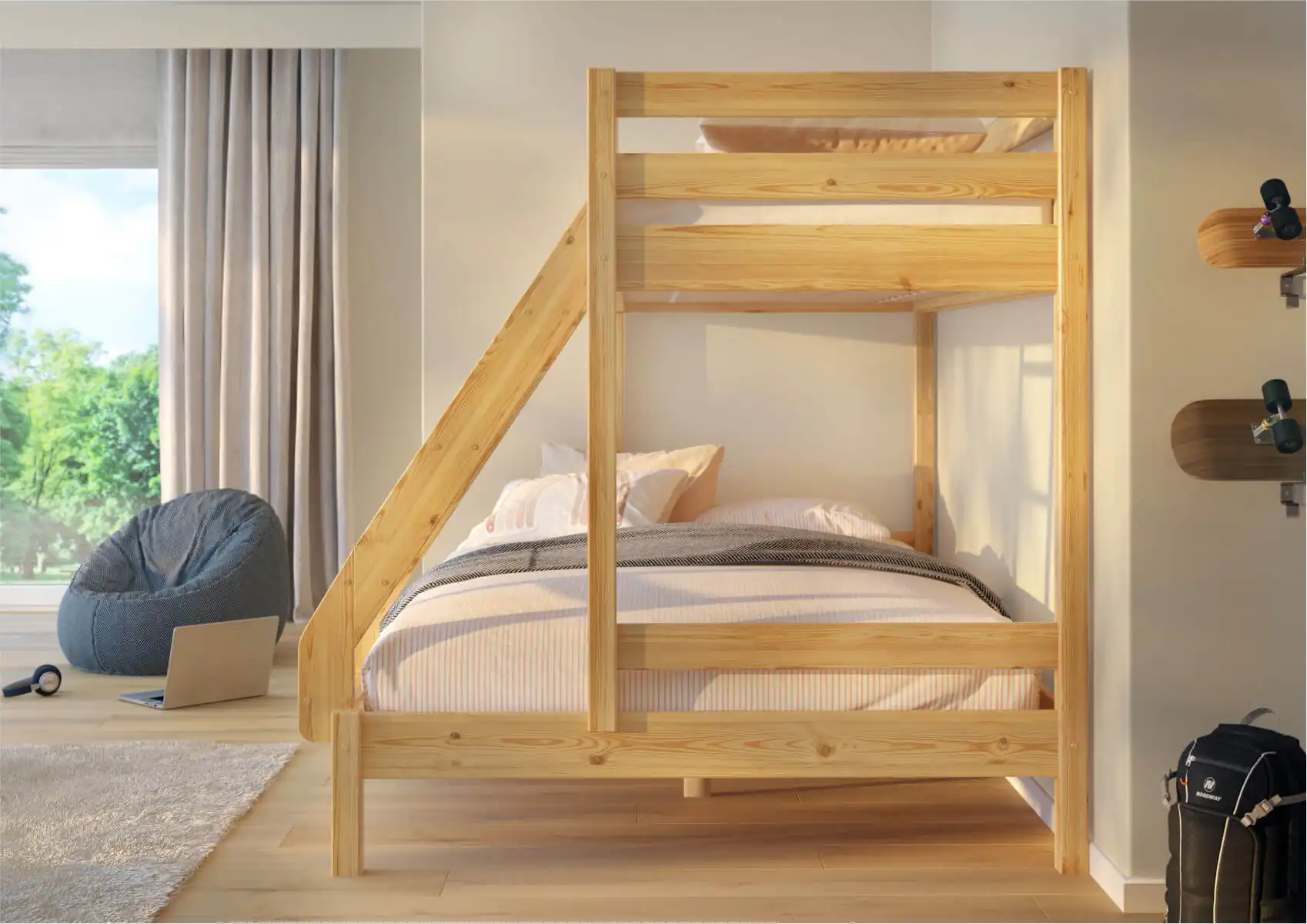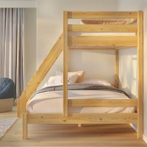 Łóżko piętrowe 3-osobowe z litej sosny to praktyczne i stylowe rozwiązanie dla rodzin z trójką dzieci, które dzielą jeden pokój. Jego naturalny wygląd, solidna konstrukcja i trwałość materiału sprawiają, że jest to doskonały wybór do każdego dziecięcego wnętrza – zarówno klasycznego, jak i nowoczesnego.