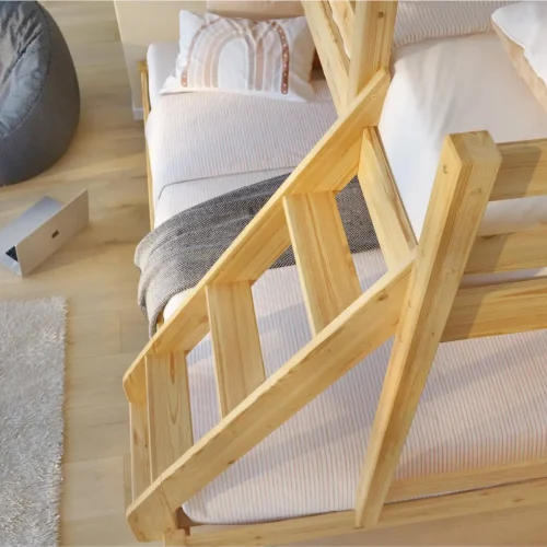 Wykonane z wysokiej klasy litego drewna sosnowego, łóżko zapewnia niezwykłą trwałość i odporność na uszkodzenia mechaniczne. To mebel, który nie tylko prezentuje się estetycznie, ale również znosi intensywne użytkowanie przez dzieci przez wiele lat – bez utraty swoich właściwości.